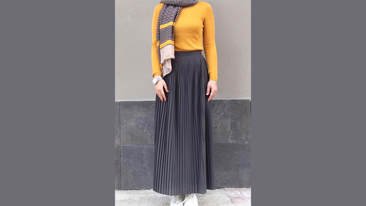 - برای ظاهری مجلسیتر، یک دامن میدی پشمی به رنگ خردلی را با یک بلوز ساده کرمی ست کنید تا به استایلی زنانه و مدرن برسید.