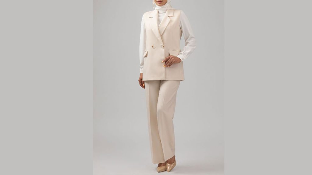 اگر در محیطی کار میکنید که پوشش رسمیتر دارد، جلیقه میتواند به استایل شما جلوهای متمایز ببخشد. کافی است یک جلیقه زنانه ساده و نسبتا گشاد از جنس کتان را روی یک بلوز یقهدار زنانه بپوشید و آن را با یک شلوار راسته زنانه و کفش پاشنهدار کلاسیک یا کفش تخت لاکچری ست کنید. این ست هم حرفهای به نظر میرسد و هم کاملا شیک است.