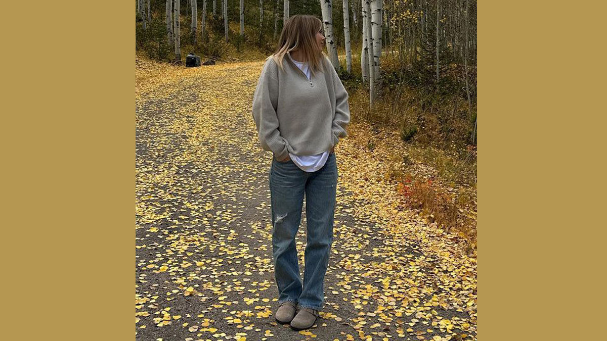 - شلوار جین: برای داشتن ظاهری روزمره و راحت، دورس نیم زیپ خود را با شلوار جین اسکینی یا راسته بپوشید. اگر استایل آزادتر را ترجیح میدهید، مدلهای پاچهگشاد با کمر نسبتاً بالا گزینهای مدرن و ترند هستند. این ترکیب را با کفش کتانی سفید یا صندل تخت کامل کنید تا استایلتان در عین سادگی، هماهنگ و شیک باشد.